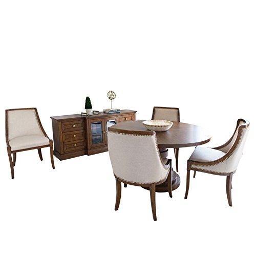 Abbyson Living Harper Round 6 Piece Dining Set in Acacia Brown