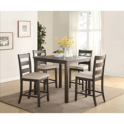 Acme Furniture Salileo 5-Piece Pack Counter Height Set, Weathered Dark Oak