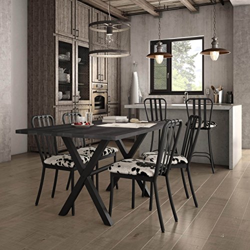 Amisco Club Metal Chairs and Alex Table, Dining Set Black/Grey Glossy, Grey Finish, Black Finish, D