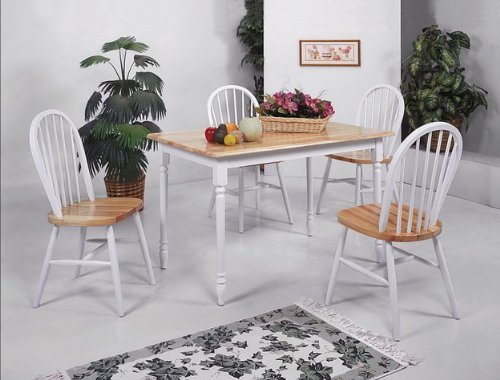 Brand New 5-pc Farm House Dining Table and 4 Dining Side Chair Set- White / Natural Finish