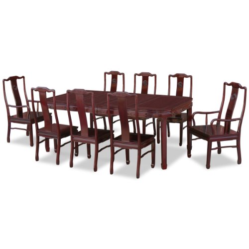 China Furniture Online Rosewood Dining Table, 80 Inches Ming Style Key Motif Dining Set with 8 Chai