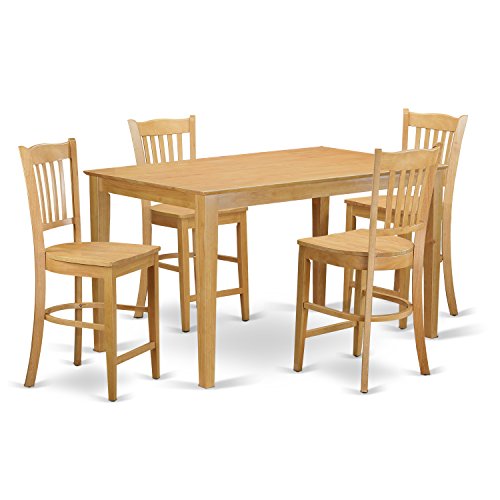 East West Furniture CAGR5H-OAK-W 5 Piece High Top Table and 4 Counter Height Chairs Set