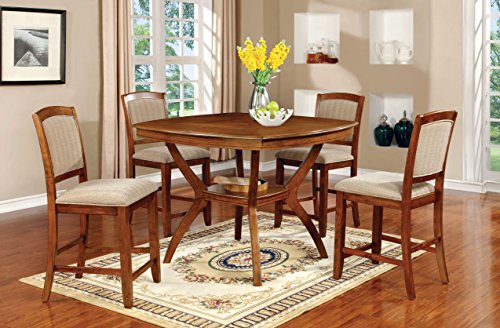 Furniture of America Dakota 5-Piece Transitional Pub Dining Set, Oak
