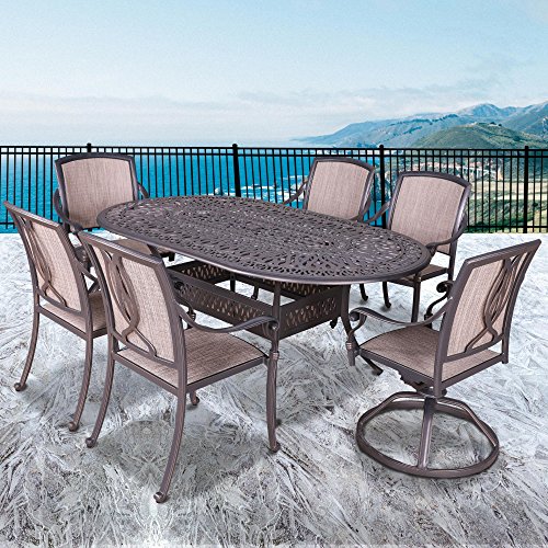 iPatio Athens 7 Piece Sling Dining Set, 42'' x 72'' Oval Table