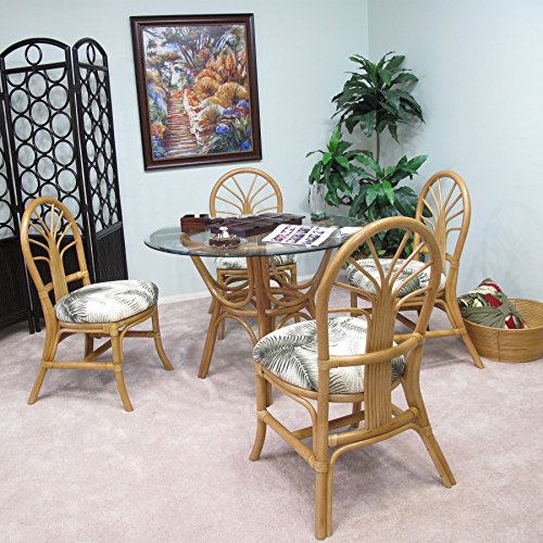 Premium Rattan Dining Furniture Sundance 5PC Set Mana Natural Tropical Big Kahuna Fabric (Honey Fin