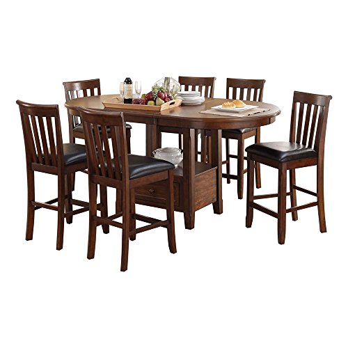Wallace Mango Wood 7 Piece Counter Height Dining Table & 6 Chairs in Burnished Cherry